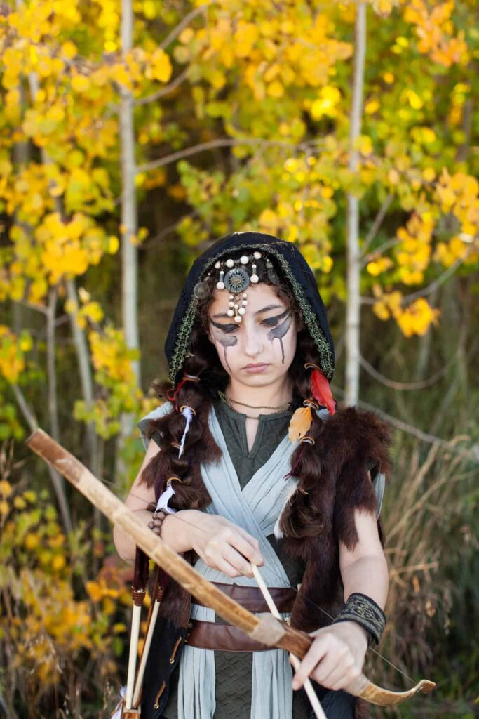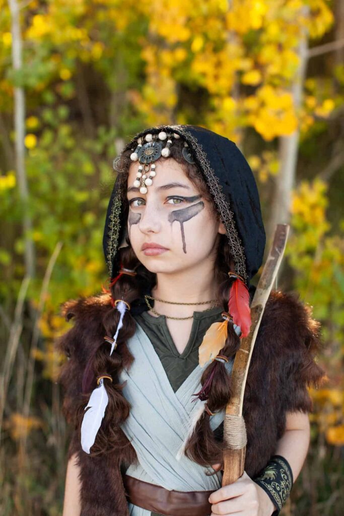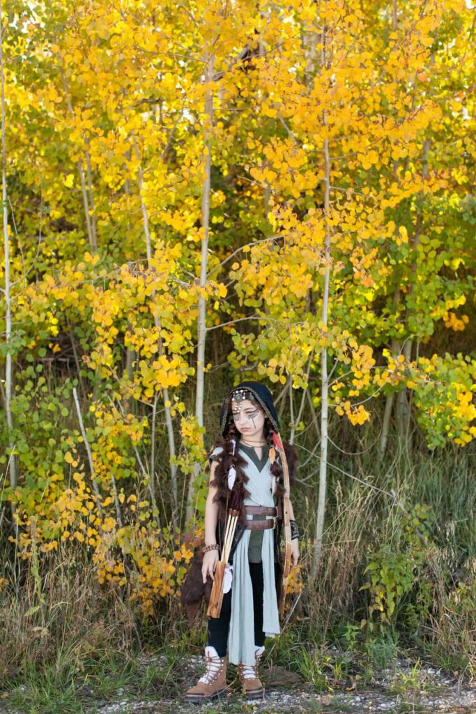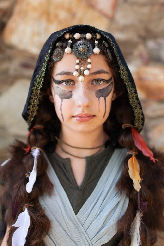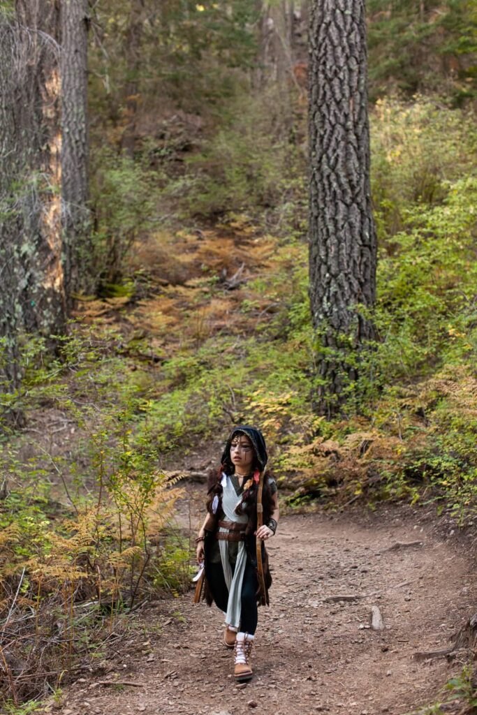 The 2025 Halloween costume photoshoot of our daughter, dressed as a Viking mountain explorer. When we asked over the summer what she would like to create this year, this was her idea and it did not disappoint. After watching the visually impressive live-action remake of “How to Train Your Dragon“, Astrid, who is a teen viking warrior that is smart, determined and has a strong personality, was our daughter’s Halloween costume inspiration. So we began our research online for what a child viking could look like and we made our own version by sourcing clothing items from thrift stores and crafting with accessories we already had.