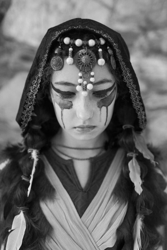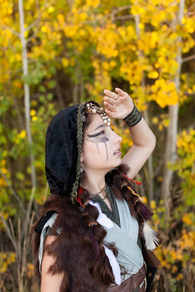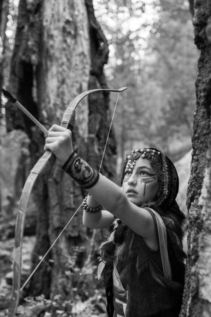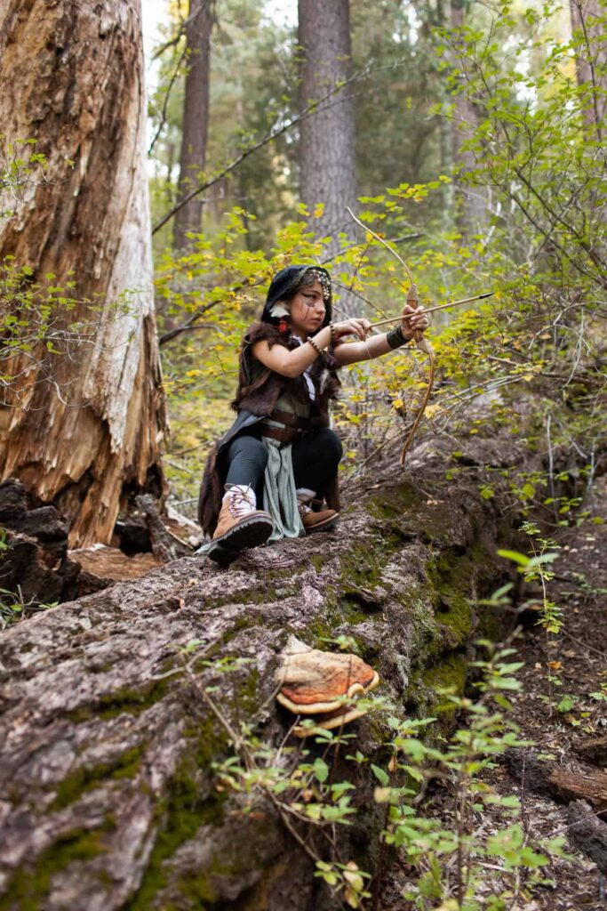 This is the tenth year that Nova has dressed up and along the way we’ve documented all these theatrical photoshoots with personalized locations. Check out last year’s Stranger Things Eleven costume that we photographed at our local roller rink. Most of her costumes are inspired by movies, shows or books we have all enjoyed together as a family. This was our second time creating imagery up on Mount Lemmon for this annual series. This time we got to explore some new areas that were different from her Wednesday Addams costume. The fall leaves were just beginning to peek and we even discovered a field of autumn-toned ferns and enormous trees with moss on the bark. It couldn’t have been more perfect for her Viking theme.