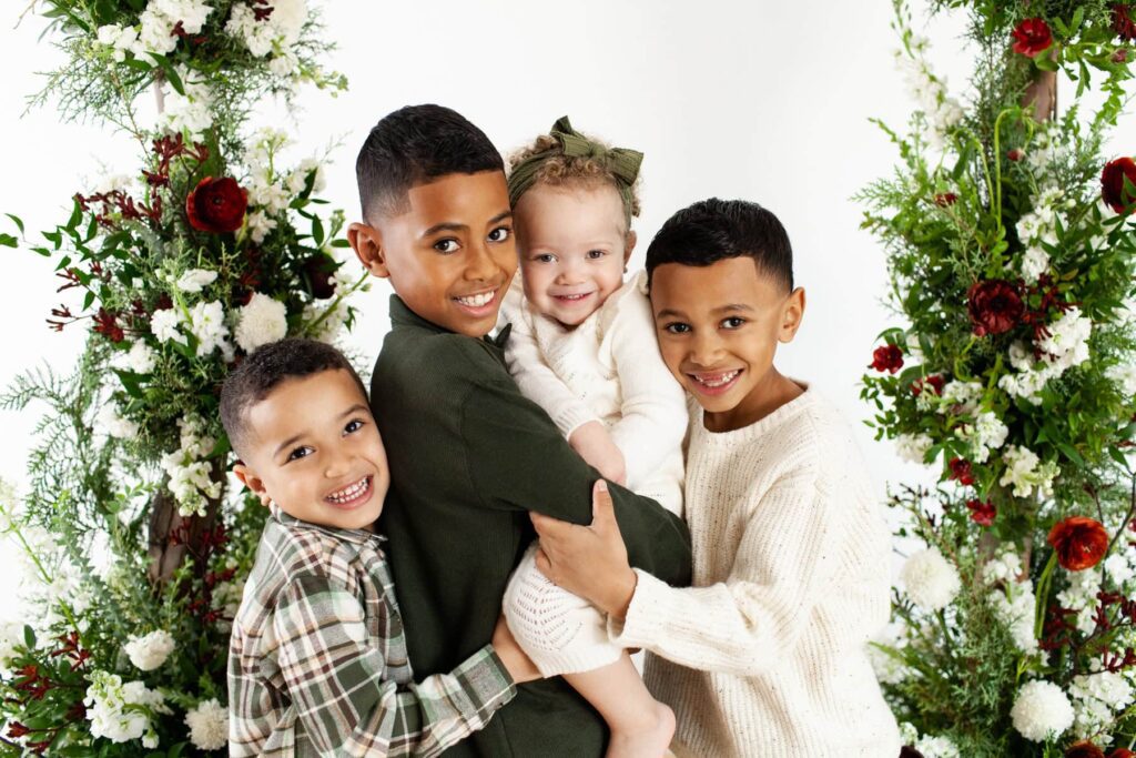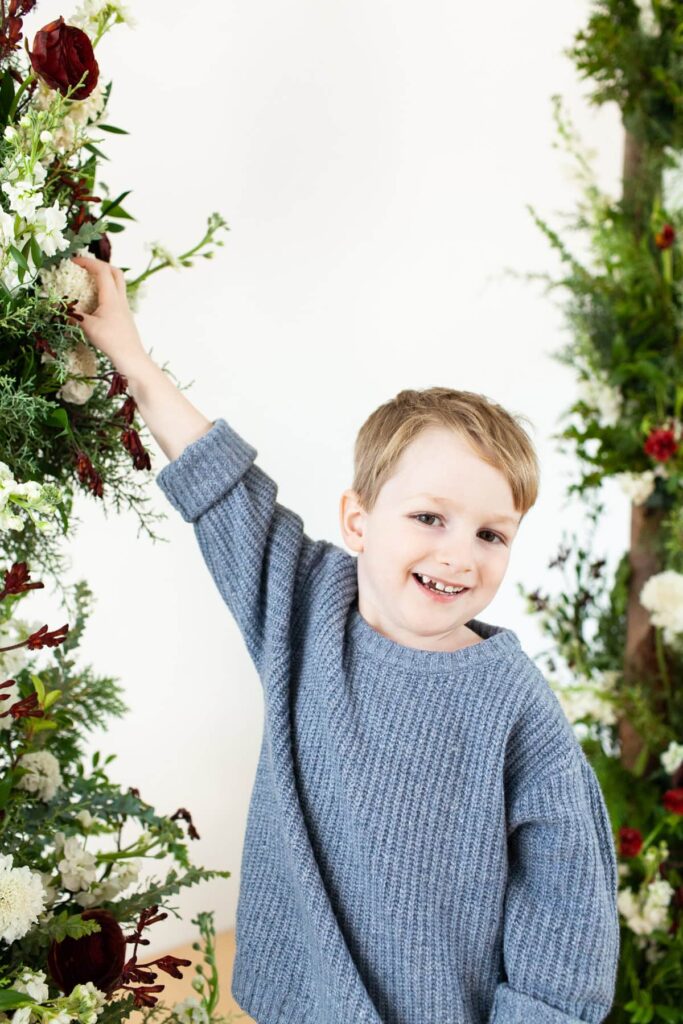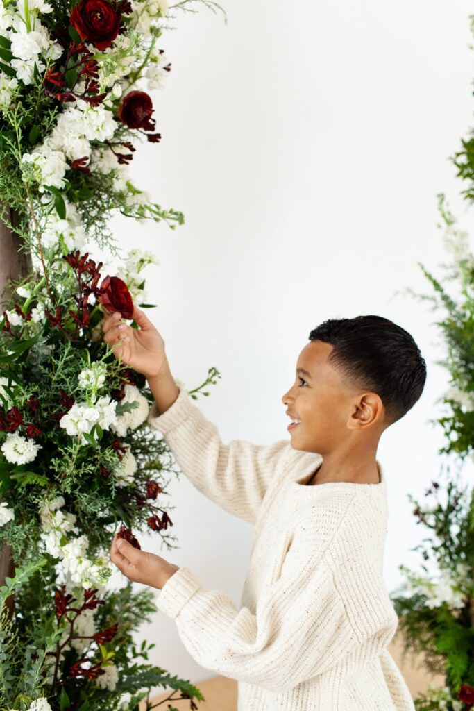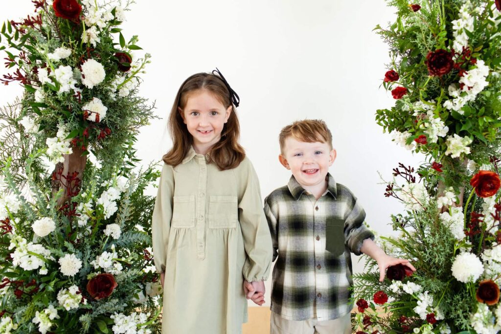 Sixth Annual Holiday Kids Portrait Event floral styling by 440 and Company, studio photography by Fletcher and Co in Tucson, Arizona