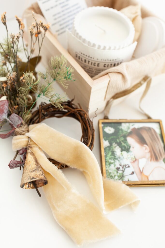 Collaborating with Teryn of The Alcove is a joy every single year, and our Holiday Kids gift bundles are no exception. Each personalized box included a timeless brass photo ornament, allowing families to choose a favorite image to display and cherish. Inside, you’ll also find the beautifully poured concrete soy wax Solstice Citrus candles by Teryn of Remèdes + Richewels, paired with petite dried floral wreaths. Her work is always intentional and soulful. Her thoughtfully crafted pieces that feel warm, heartfelt, and deeply connected to honoring our planet.